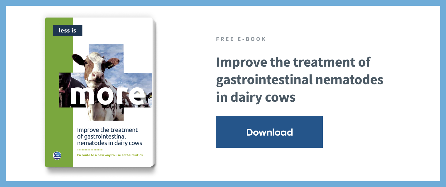 Charlier J, Morgan ER, Rinaldi L, van Dijk J, Demeler J, Höglund J, Hertzberg H, Van Ranst B, Hendrickx G, Vercruysse J, Kenyon F. Practices to optimise gastrointestinal nematode control on sheep, goat and cattle farms in Europe using targeted (selective) treatments. Vet Rec. 2014 Sep 13;175(10):250-5. https://doi.org/10.1136/vr.102512